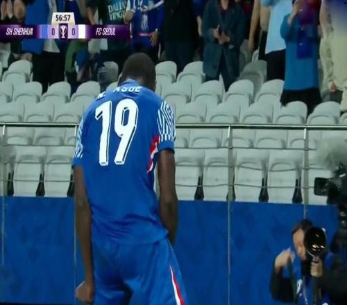 第26分钟,马纳法突破被金珍洙踩踏放倒,裁判向金珍洙出示一张黄牌。