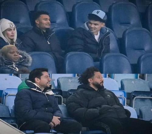 在今天凌晨进行的英超国际杯小组赛中,曼城U21主场1-1战平皇马U21,其中,尼科-奥赖利和马塞洛来到了现场观战。