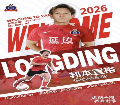 北京时间1月9日,中甲球队延边龙鼎官方宣布,28岁日本中场邦本宜裕正式加盟。这也意味着这位上赛季帮助辽宁铁人冲超成功的功勋队长,无缘随队征战新赛季中超。