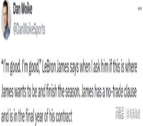 在昨日湖人队与快船队那场激烈较量落幕后,赛后采访环节里,NBA资深记者丹·沃伊克(Dan Woike)带来了一则备受瞩目的消息。当被问及是否有意愿在湖人队打完本赛季剩余赛程时,勒布朗·詹姆斯给出了明确且坚定的回应:“我状态良好,一切都没问题。”